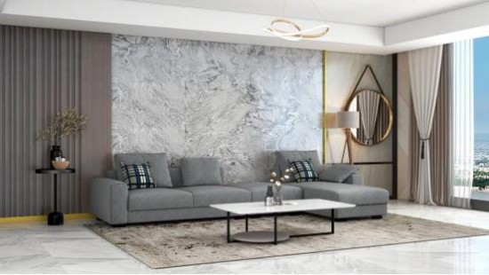 運(yùn)用大理石背景墻設(shè)計(jì),要格外注意家具的選擇,用色、形制上要適配整體風(fēng)格,不要太過(guò)割裂。