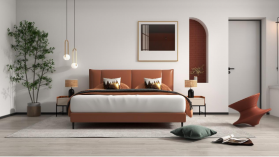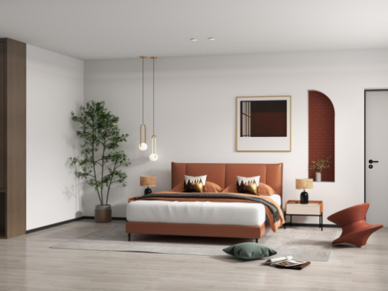 CBD家居·白金 | BS011軟床具有鮮明輪廓線條,與床頭寬邊設(shè)計(jì)共同凸顯現(xiàn)代時(shí)尚感,活力橙色賦予空間靈動(dòng)之美,平衡居家環(huán)境色彩,在留白中點(diǎn)綴出臥室溫馨之意。