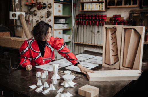 設(shè)計師Eleanor Hill在搭建Pirouette作品小樣