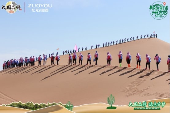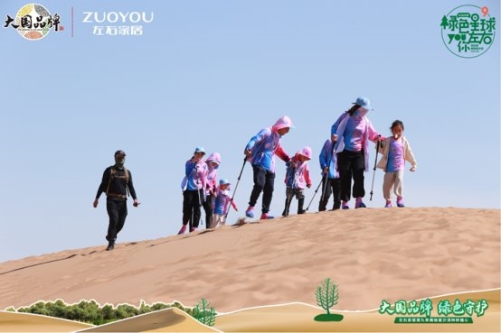 「綠色星球」第9季,左右家居特別邀請到中國綠化基金會副秘書長繆光平、CCTV《大國品牌》總出品人吳綱的一同參與。在左右家居董事長黃華坤的帶領(lǐng)下,公益團一行徒步深入騰格里沙漠腹地,用腳步丈量和感受當?shù)貒谰淖匀画h(huán)境。