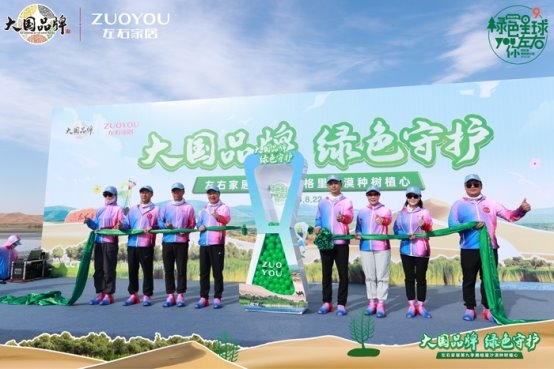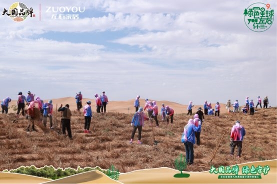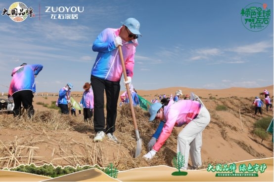 踐行公益環(huán)保事業(yè),構(gòu)建綠色生態(tài)長城。8月22日,由左右家居發(fā)起,中國綠化基金會、CCTV《大國品牌》共同參與的「大國品牌 綠色守護」綠色星球第9季種樹植心公益活動在阿拉善騰格里沙漠正式啟動,持續(xù)助力“百萬森林”計劃,為阿拉善“樹”起生態(tài)綠屏。