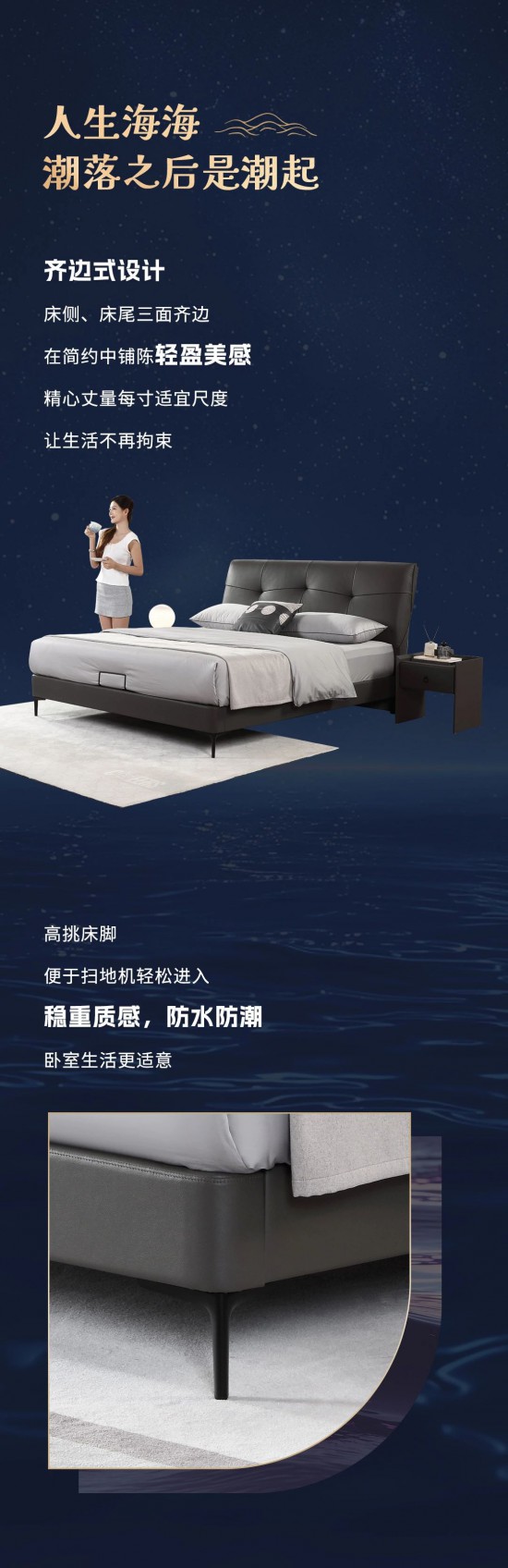 核心提示:夢(mèng)海浮沉,撥開(kāi)云霧見(jiàn)月明,雅致床屏造型,如海岸般寬廣豁達(dá),搭配浪花浮沉般的線條設(shè)計(jì),給家持久耐看的優(yōu)雅。