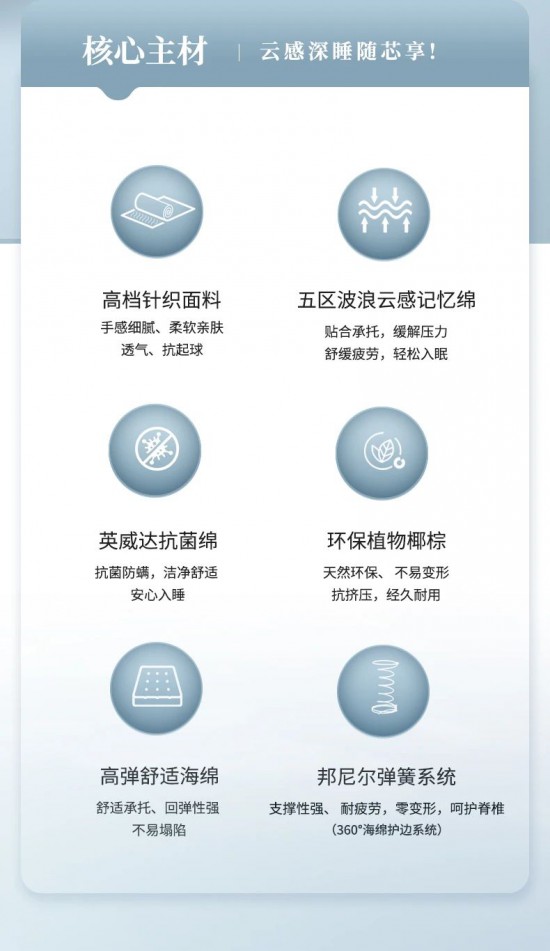 核心提示:深睡眠滿活力云感·深層護脊釋壓,卸下身心疲憊,舒享優(yōu)質(zhì)睡眠時光。