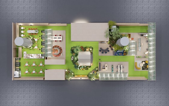 此外,這座主題館在空間設(shè)計(jì)上也別具匠心。從現(xiàn)場展示圖了解到,它共分為七大區(qū)域,涵蓋了洽談、辦公、協(xié)作、休閑等多元化功能,全方位滿足了不同工作場景的需求。“主題館內(nèi)采用了模塊化家具與可移動(dòng)隔斷的設(shè)計(jì),使得空間能夠自由轉(zhuǎn)換與重組,輕松打造出靈活多變的辦公場景,為工作者們提供了更加便捷、高效的辦公體驗(yàn)。”圣奧工作人員表示。