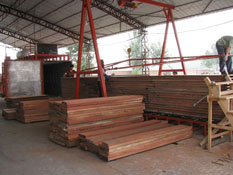 f、在干燥過程中可將原來彎曲板材中(含水率大于20%)75-85%壓平壓直,提高木材利用率。