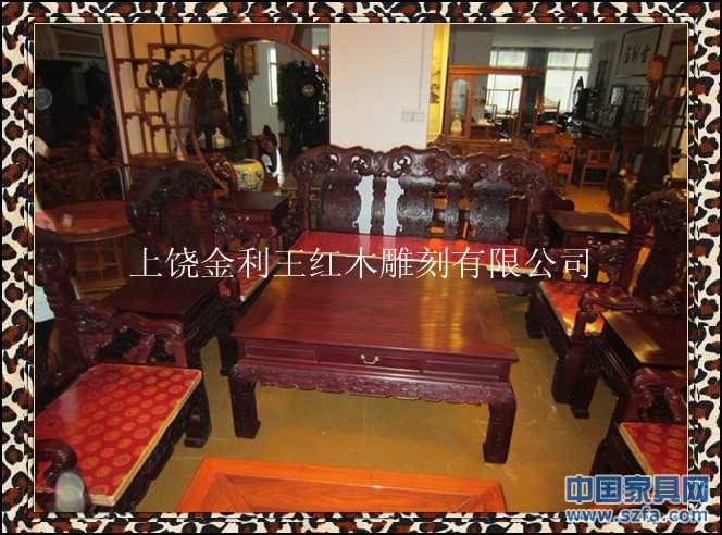 上饒市金利王紅木雕刻有限公司,座落于江西省上饒市經(jīng)濟(jì)開(kāi)發(fā)區(qū)鳳凰園區(qū),是一家專門從事中高檔紅木家具生產(chǎn)的專業(yè)廠家。本公司視質(zhì)量與信譽(yù)為企業(yè)生存和發(fā)展的根本,潛心為客戶的利益而開(kāi)發(fā)創(chuàng)新各種款式別致的優(yōu)質(zhì)產(chǎn)品。本公司產(chǎn)品選材于東南亞進(jìn)口的黃花梨、紫檀、酸枝、緬甸花梨等珍貴紅木,其特點(diǎn)色澤深沉、質(zhì)地精密、紋理細(xì)膩。公司擁有精湛的技術(shù),產(chǎn)品手工制作,名師打理,設(shè)計(jì)精美,制作精巧,榫卯牢固,舒適耐用。既傳承傳統(tǒng)的雕刻技術(shù),研發(fā)古典藝術(shù)家具,又融入了新的潮流構(gòu)思,其人、物、花、鳥(niǎo)栩栩如生,龍、鳳、獅、虎神采飛揚(yáng),富含東方神韻,各類產(chǎn)品深受廣大消費(fèi)者和藝術(shù)愛(ài)好者的親睞。