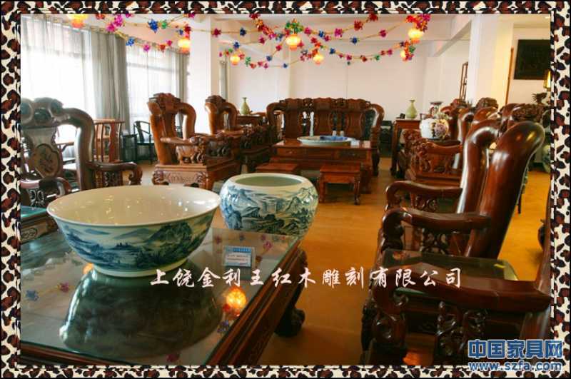 上饒市金利王紅木雕刻有限公司,座落于江西省上饒市經(jīng)濟(jì)開(kāi)發(fā)區(qū)鳳凰園區(qū),是一家專門從事中高檔紅木家具生產(chǎn)的專業(yè)廠家。本公司視質(zhì)量與信譽(yù)為企業(yè)生存和發(fā)展的根本,潛心為客戶的利益而開(kāi)發(fā)創(chuàng)新各種款式別致的優(yōu)質(zhì)產(chǎn)品。本公司產(chǎn)品選材于東南亞進(jìn)口的黃花梨、紫檀、酸枝、緬甸花梨等珍貴紅木,其特點(diǎn)色澤深沉、質(zhì)地精密、紋理細(xì)膩。公司擁有精湛的技術(shù),產(chǎn)品手工制作,名師打理,設(shè)計(jì)精美,制作精巧,榫卯牢固,舒適耐用。既傳承傳統(tǒng)的雕刻技術(shù),研發(fā)古典藝術(shù)家具,又融入了新的潮流構(gòu)思,其人、物、花、鳥(niǎo)栩栩如生,龍、鳳、獅、虎神采飛揚(yáng),富含東方神韻,各類產(chǎn)品深受廣大消費(fèi)者和藝術(shù)愛(ài)好者的親睞。