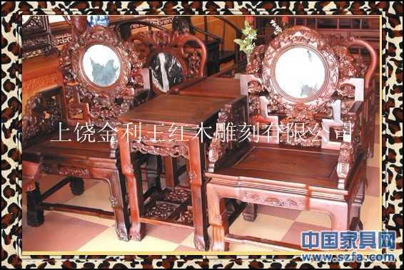 上饒市金利王紅木雕刻有限公司,座落于江西省上饒市經(jīng)濟開發(fā)區(qū)鳳凰園區(qū),是一家專門從事中高檔紅木家具生產(chǎn)的專業(yè)廠家。本公司視質(zhì)量與信譽為企業(yè)生存和發(fā)展的根本,潛心為客戶的利益而開發(fā)創(chuàng)新各種款式別致的優(yōu)質(zhì)產(chǎn)品。本公司產(chǎn)品選材于東南亞進口的黃花梨、紫檀、酸枝、緬甸花梨等珍貴紅木,其特點色澤深沉、質(zhì)地精密、紋理細膩。公司擁有精湛的技術(shù),產(chǎn)品手工制作,名師打理,設計精美,制作精巧,榫卯牢固,舒適耐用。既傳承傳統(tǒng)的雕刻技術(shù),研發(fā)古典藝術(shù)家具,又融入了新的潮流構(gòu)思,其人、物、花、鳥栩栩如生,龍、鳳、獅、虎神采飛揚,富含東方神韻,各類產(chǎn)品深受廣大消費者和藝術(shù)愛好者的親睞。