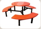 餐臺面、圓凳、條凳,表面是用膠衣樹脂加色涂面,加玻纖布和樹脂,中間用木粒板定型,加上玻纖布和樹脂等復合而成,其表面防水、耐酸。底部不能沖水,沖水會造成木粒板進水發(fā)泡爆裂影響產品質量。室內玻璃鋼產品不宜陽光長期直接照射,會導致老化,變色,嚴重會變形、爆裂等,比正常使用壽命短60%。常規(guī)臺凳在正常使用下每個位可承受65KG左右重量。