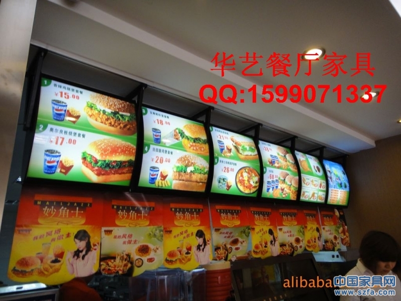 燈箱:餐廳燈箱,肯德基燈箱,麥當勞燈箱,德克士燈箱,華萊士燈箱,真功夫燈箱,麥當勞雪糕燈箱,快餐連鎖店專用燈箱,餐牌燈箱,點餐燈箱,價目燈箱,雙面開啟立式燈箱,廣告燈箱,門楣燈箱,換畫燈箱,亞克力燈箱,車站站臺燈箱,旋轉(zhuǎn)燈箱,單雙面超薄燈箱,弧形燈箱,異形燈箱制作等。