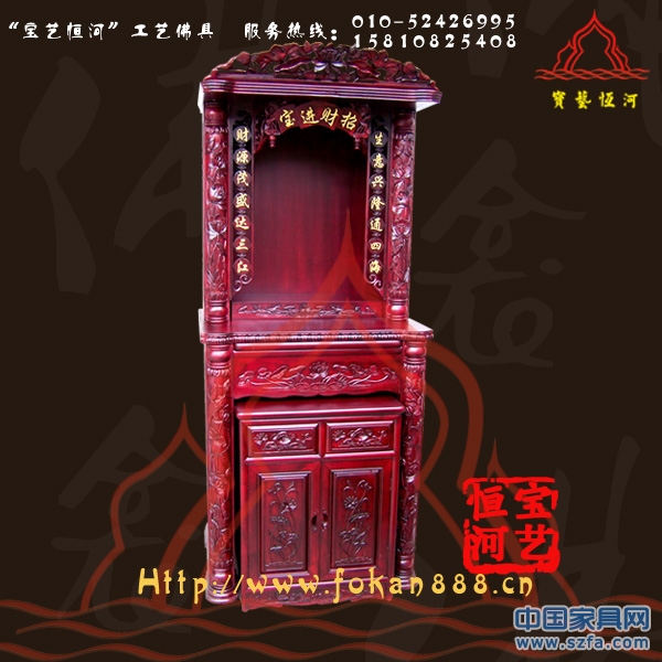 北京市寶藝恒河工藝佛具有限公司(原北京儀和工藝佛龕廠),成立于2002年,是一家以木雕工藝品起家,專業(yè)木雕高檔佛龕生產(chǎn)企業(yè),也是北京最大的佛龕供應商,生產(chǎn)的佛龕品牌“寶藝恒河”,其香樟木佛龕專賣店已布遍北京城。定制佛龕找儀和,儀和佛龕中國佛龕定制專家;請佛龕請到寶藝恒河,寶藝恒河中國佛龕第一品牌。