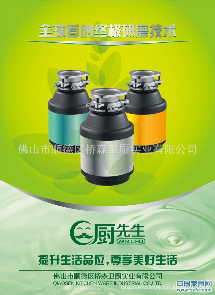 它是一種現(xiàn)代化的廚房電器,提供一種全新方法來處理現(xiàn)代家庭中的食物垃圾,安裝于廚房水槽下,并與排水管相連:Mr.廚 食物垃圾處理機通過改變食物垃圾的形態(tài)來進行及時的食物垃圾無害化處理,能夠將食物垃圾處理成細小顆粒,直接從下水道排出,可實現(xiàn)及時、方便、迅捷的廚房清潔;避免食物垃圾堆積而滋生病菌、蚊蟲和異味,有效優(yōu)化家居環(huán)境,并徹底解決下水道容易堵塞的問題。