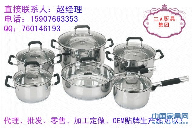 高檔不銹鋼廚具、湯鍋、炒鍋、煎鍋、奶鍋、蒸鍋、刀叉、碗筷碟子等眾多款式,批發(fā)、零售、代理還可以加工定做,OEM貼牌生產(chǎn)!廠家直銷(xiāo)?。?!櫥柜、炊具等產(chǎn)品配套的最佳選擇!消費(fèi)者最?lèi)?ài)的禮品,贈(zèng)品!