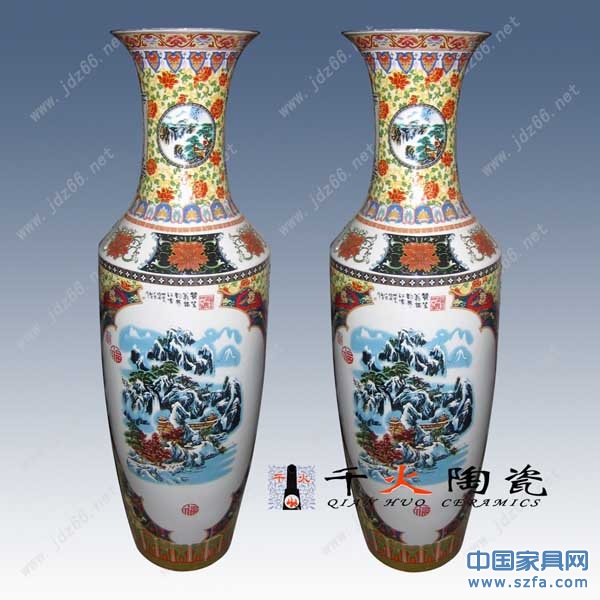 陶瓷大花瓶全手工繪制,高白泥手工拉胚,高白釉上底色,整個生產(chǎn)工序要經(jīng)過淘泥、摞泥、拉坯、修坯、繪畫、上釉、燒窯、成瓷等近七十道工藝才能制做完成,并可根據(jù)客戶特殊需要在大花瓶身上可燒制LOGO、公司名稱、人名、贈言,紀(jì)念用語,年月日等。本產(chǎn)品多用于大廳、門廳、客廳等擺設(shè),主要適合于開業(yè)禮品,大樓建筑落成、工程竣工開業(yè)、奠基典禮、酒店賓館陳設(shè)、企事業(yè)單位喬遷、周年紀(jì)念 、學(xué)校校慶、搬遷新居等。
