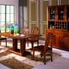 優(yōu)秀的產(chǎn)品不止擁有單純的使用功能,還擁有打動人心的內(nèi)在價值。最最自然的形體狀態(tài),最最實(shí)在的使用功能是此方形餐桌椅的主題。厚實(shí)的桌腿穩(wěn)重地支撐著平滑光潤的桌面,邊緣均經(jīng)過了圓角處理,安全而美觀。海棠原木的紋理在其間自然演繹,大氣與溫馨完美結(jié)合。中式傳統(tǒng)氣息濃郁的椅凳方形座面,丁字形靠背,采用入榫工藝,簡美舒適。在忙忙碌碌的生活形態(tài)下,就餐是一天里家庭成員相聚的惟一時間。圍坐在這個理想的餐廳里不僅能產(chǎn)生一種愉悅的氣氛,使每一個人都能感到松弛,更有益于家庭成員相互和諧會談,其樂融融。造型簡潔的餐邊柜內(nèi)藏豐富,方便實(shí)用,邊柜上面陳設(shè)的儲酒架線條流暢,整體構(gòu)成視覺上的美感,更富有時尚的氣息。典雅高貴的兩門酒柜,通透的玻璃柜門,扁舟交錯造型的拉手,不經(jīng)意間將永結(jié)同心、百年好合寓意其中,是餐廳中不可或缺的精品。