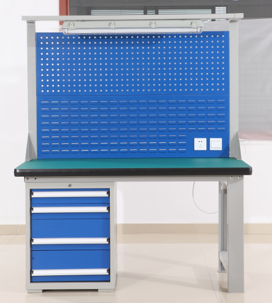 1.工作臺(tái)臺(tái)面:1800mm*750mm*25mm綠色防靜電耐磨膠皮,防靜電穩(wěn)定。