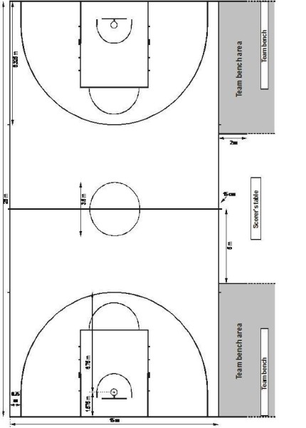 2、標(biāo)準(zhǔn)的比賽場(chǎng)地長(zhǎng)度為28m,寬度為15m。