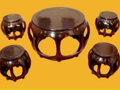(2) 花梨鼓桌鼓凳5件套