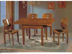 全實(shí)木餐桌,配備6把椅子,長(zhǎng):1.3米,寬:0.9米,高0.76米,可將中間那節(jié)臺(tái)面下降,變成0.9*0.9米的方桌,適合就餐人數(shù)經(jīng)常變動(dòng)而又想加大空間的家庭。有柚木色、紅木色可供選擇。