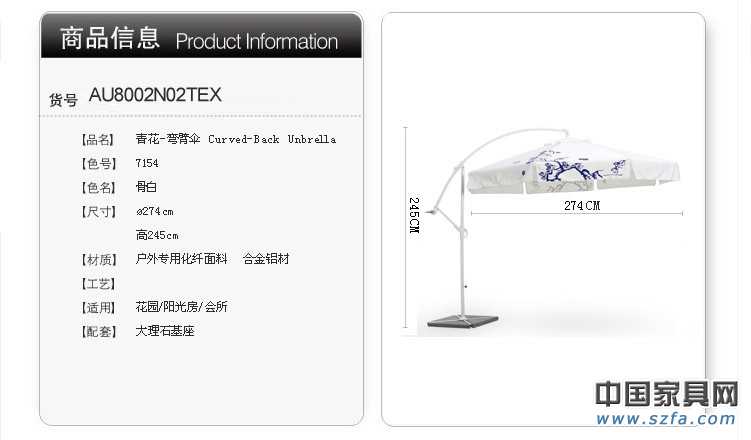 【觀唐】花園戶外家具 戶外傘 庭院傘 青花 彎臂傘