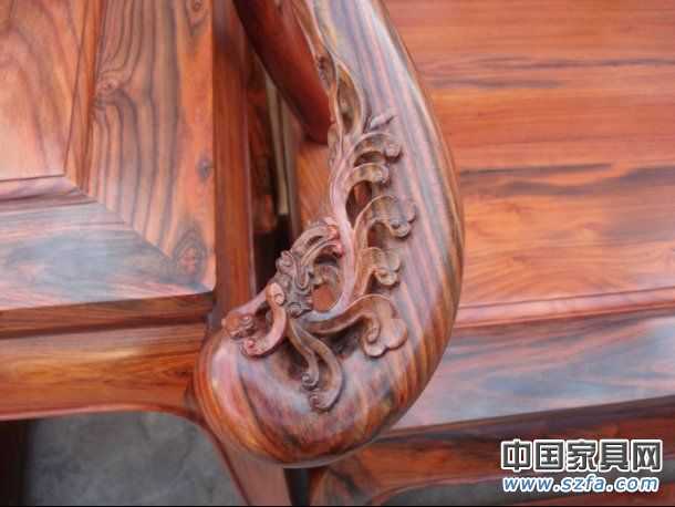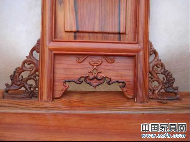 其制作家具的工藝也應(yīng)和紫檀木一樣,即最后的工序應(yīng)使用調(diào)勻底色,然后燙蠟的方法,千萬不能使用普通硬木的做法---用漆。因為老紅木飽含蠟質(zhì),只需打摩擦蠟,即可平整潤滑,光澤耐久,給人一種淳厚的含蓄美。如果采用現(xiàn)代的擦漆工藝,恰恰掩蓋了其木質(zhì)的優(yōu)良本性和紋理的自然之美。且老紅木用漆來處理,容易給一些廠家將其它木材摻雜其中,為其渾水摸魚提供便利。
