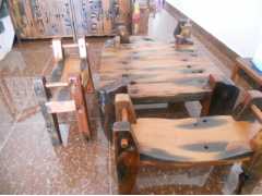 老船木經(jīng)過海水的上百年浸蝕與洗滌,在烈日與暴風雨中航行千萬里,歷經(jīng)海水、河水、溪水的打磨與鍛煉形成的。其木質(zhì)堅實,高密度,高硬度,顏色深沉,紅黑老黃相加呈現(xiàn)天然韻味。經(jīng)過打磨的船木擁有光滑的表面不打蠟而具打蠟效果。更加神奇的是老船木能夠防火、防水、防蟲、防腐,是當今倡導綠色健康、環(huán)保、原生態(tài)永恒的主題,所以老船木是做家具的上好材料。令家具行業(yè)備加推崇,因此老船木家具也十分搶手。