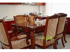 【產(chǎn)品材質(zhì)】:現(xiàn)代餐臺,臺高750m/m,臺面厚度20—50mm,橡木木皮貼面,基材選用優(yōu)質(zhì)高密度板,臺灣大寶油漆,經(jīng)嚴格的"五底三面"油漆工藝,配合進口及國內(nèi)優(yōu)質(zhì)五金件,臺面大小不同的形狀組合,可在宴會大廳或多功能會議廳中按客人不同的需要靈活擺設(shè),充分發(fā)揮酒店大廳的功能。餐椅和桌子顏色和款式配套(家具的材料、規(guī)格可以按你房間的大小適合度來定制)。