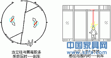 4、防碰感應(yīng)探頭:安裝在每個(gè)展箱的前部位置,當(dāng)紅外線探測(cè)到行人后,旋轉(zhuǎn)門自動(dòng)停止,防止碰撞行人;