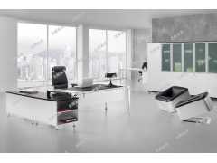 外露15MM兩邊白色啞光,中間黑色皮革車線,臺(tái)面不銹鋼線蓋,銀色腳架支撐,支撐側(cè)臺(tái)頂板黑色啞光,其他全白色啞光。