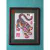 虎為獸中之王,威武雄壯,權(quán)勢的象征,能辟邪。又曰:“虎捕田豕”保護莊稼,在古老的農(nóng)業(yè)社會,是蠟祭八神之一,后來道家把它納入“四靈”。該畫為意象造型,夸張頭部和眼睛,強調(diào)其神韻和本質(zhì)特征。