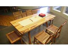 無(wú)論是用樹(shù)樁做成的茶幾 還是一塊整體板巧制的書桌 椅凳 飾品等 都有著斜徑切的質(zhì)地紋理 淺黃色的肉質(zhì) 深咖啡色的年輪線 非常漂亮 據(jù)店主介紹這些家具源自從非洲遠(yuǎn)道而來(lái)的烏金木原料 因?yàn)槠浼y理非常突出 處處散發(fā)著奇異的骨感美 人常說(shuō)物以稀為貴 烏金木家具之所以珍貴 不但引起突出的原木材紋理和強(qiáng)烈不原木材對(duì)比度 更因它色彩醒目且極具流動(dòng)感的天然金色和黑色曲線使烏金木的每一面都蘊(yùn)含著濃郁的氣息 因此 無(wú)論是用烏金木做成的書柜 書桌 沙發(fā) 椅凳 還是躺椅等 都因其突出的紋理及異域的骨感美等特點(diǎn) 將其濃郁的肌理美展現(xiàn)出來(lái) 使人既有溫潤(rùn) 踏實(shí) 親切的感受 優(yōu)惠油然而生出一種至尊至貴的高尚追求