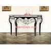 新古典主要風格:最大特色是放棄曲線結(jié)構(gòu)和虛飾,設(shè)計重點擺在水平和垂直的結(jié)構(gòu)本體上面。在功能上加強結(jié)構(gòu)的力量,腿部均采用逐漸向下縮小的形式;外框傾向于采用長方形,使其更符合實際使用的需要。表面少用鍍金青銅件,多用拼木鑲嵌涂漆手法進行裝飾。
