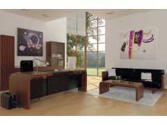 在材質(zhì)上,美格家具對這款總經(jīng)理辦公室的辦公家具使用的是木質(zhì),基材采用進口高密度環(huán)保板,厚50mm,美國進口0.8mm特級胡桃木皮飾面,底面貼0.6mm國產(chǎn)胡桃木,實木封邊,木皮與芯材之間采用德國“牛頭牌”膠水粘合,表面噴涂意大利“易涂寶”環(huán)保油漆,硬度達H級。