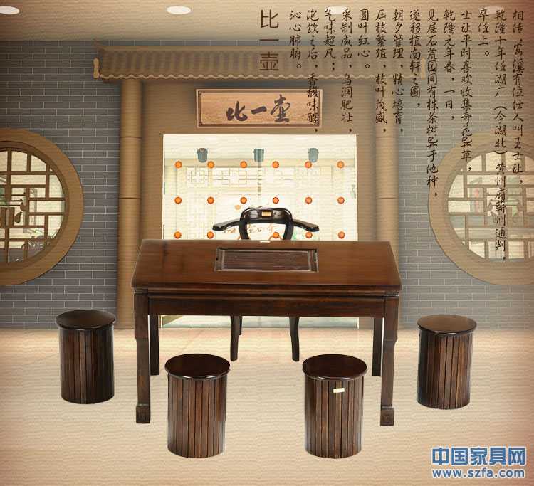 比一壺紅木家具/功夫茶桌實(shí)木仿古家具黑胡桃木方形茶桌073