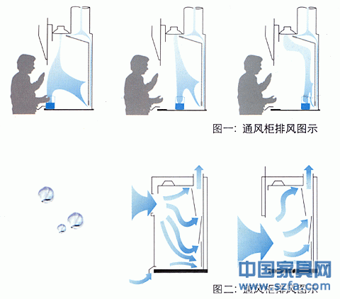 圖一、以中央進氣方式經(jīng)過通風(fēng)裝置進行實驗室排氣。 |