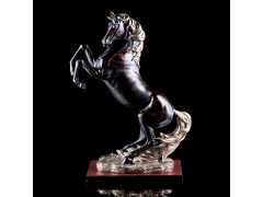 以樹脂為原料,通過模具澆鑄而成,再以手工精雕細(xì)琢,手工上色,成就此造型美觀形象逼真奔騰之馬,喻一馬當(dāng)先馬到成功。