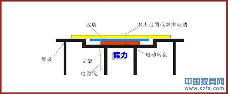 | 4、可配電磁爐的電動轉(zhuǎn)盤安裝圖如下:注:此款電動轉(zhuǎn)盤內(nèi)配電刷,可外送220V交流電。 |