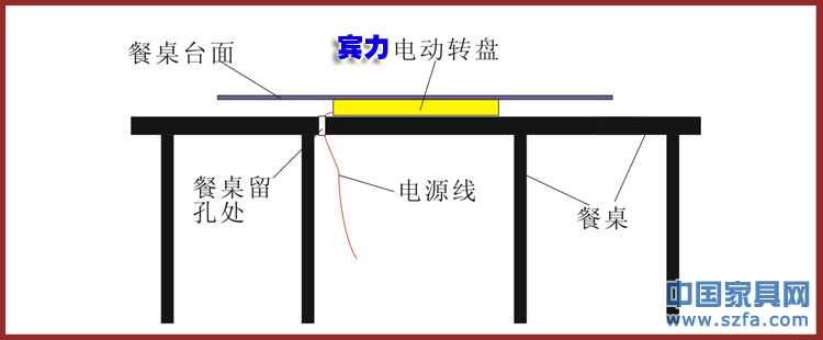 | 4、可配電磁爐的電動(dòng)轉(zhuǎn)盤(pán)安裝圖如下:注:此款電動(dòng)轉(zhuǎn)盤(pán)內(nèi)配電刷,可外送220V交流電。 |