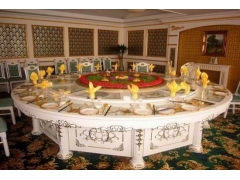 電動(dòng)餐桌就是在大圓桌面上安裝以電動(dòng)轉(zhuǎn)盤,使用時(shí)轉(zhuǎn)盤可以根據(jù)設(shè)置自動(dòng)低速旋轉(zhuǎn),方便用餐人員,夾取食物菜肴。一般有手動(dòng)設(shè)置勻速和變速兩種。一般配有遠(yuǎn)程遙控器,方便侍者服侍。多用于高檔酒店包間,采用實(shí)木,密度板,多層等板材制造而成。轉(zhuǎn)盤多為鋼化玻璃或者實(shí)木面制造。電動(dòng)餐桌是近幾年酒店餐桌椅的一個(gè)創(chuàng)新產(chǎn)品,可以給人們就餐帶來更多的方便。