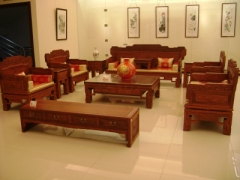 3、紅木家具有沙發(fā)、大床、博古架、大衣柜、頂箱柜、中堂、寶座、畫架、 茶藝桌、餐桌等。