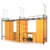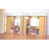 結(jié)構(gòu):由床、書柜、衣柜、書桌和梯架組成。書柜和衣柜連接在床架床腿內(nèi)側(cè),書桌將書柜、衣柜連在一起,床架有書柜的一頭安裝有梯架,床架的另一頭與梯架同側(cè)有護(hù)欄,書桌的桌面下有鍵盤支架和抽屜架。由于床是立體空間組合,不僅節(jié)省了宿舍的空間,而且使宿舍整齊美觀。