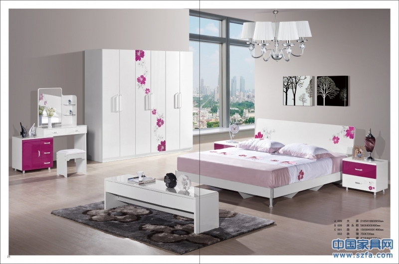 現(xiàn)代簡約白亮光家具成人彩色亮光套房 時尚玫紅色