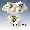 我公司生產(chǎn)的景德鎮(zhèn)陶瓷茶具造型優(yōu)美、品種繁多、裝飾豐富、風(fēng)格獨(dú)特。瓷質(zhì)"白如玉、明如鏡、薄如紙、聲如磬"。有手繪青花、粉彩、玲瓏、顏色釉各種樣式。還可以根據(jù)您的需要印制您需要的各種圖片、添加公司LOGO圖形和文字等。