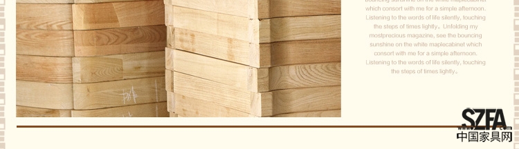 | 【主材料】 | 1.產(chǎn)品主框架均采用實木,其他結構包含部分復合板材; 2.所有板材都經(jīng)過消甲醛處理,板材甲醛釋放量均優(yōu)于環(huán)保水平,保證了家具的環(huán)保安全和無污染; 3.世界一流涂裝工藝,各項指標均符合GB18581-2001的標準要求,符合人體健康和環(huán)保的時代要求; 4.知名品牌五金件,長久使用不變形. |