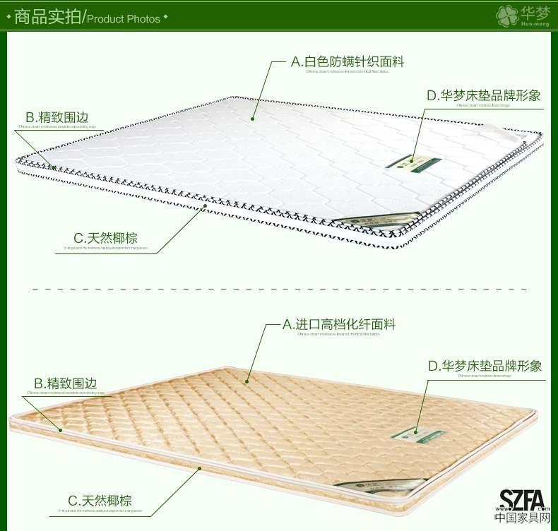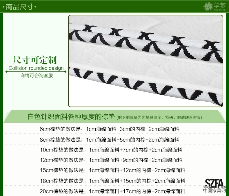6.硬棕床墊特別經(jīng)過防螨、防蛀、抗菌處理,經(jīng)久耐用、安全、環(huán)保、凈潔,是居家的首選床墊.