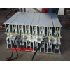 ?。?)、在膠帶接頭上面。與下電熱板對(duì)應(yīng)的位置,鋪滿塑料薄膜(或撒滑石粉),然后按順序在其上放置上電熱板和隔熱板。其形式如圖6所示。注意:多臺(tái)硫化機(jī)并列工作時(shí),在下電熱板接縫處墊以0.2x50x接縫長(zhǎng)的薄金屬板。