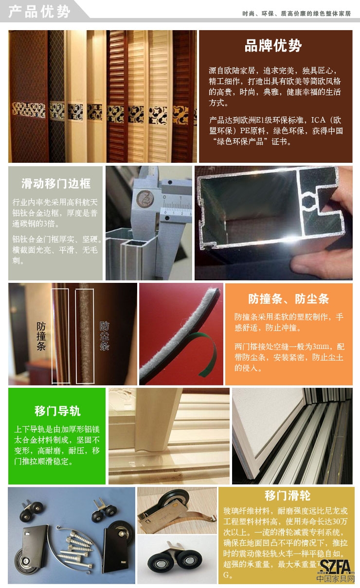 衣柜移門,又叫滑動(dòng)門衣柜或者推拉門衣柜。隨著人們消費(fèi)意識(shí)的逐漸改變,對(duì)家具搭配的認(rèn)識(shí)也在日趨變化,人們開始追求更多的便利和實(shí)惠,因此,家裝訂做移門衣柜的消費(fèi)者明顯增多。因其使用滑動(dòng)門,量身定做,并且訂做過程簡(jiǎn)便,所以在使用方便、結(jié)構(gòu)穩(wěn)定、提高空間利用率、性價(jià)比等方面,清遠(yuǎn)衣柜移門都占有絕對(duì)優(yōu)勢(shì)。