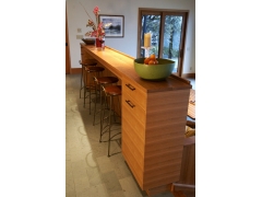 無論是在溫馨的家中還是在休閑的酒吧,一個(gè)富有情調(diào)的個(gè)性吧臺(tái)總是少不了的。而隨著家居空間的人性化設(shè)計(jì)和多元化的空間布局,吧臺(tái)也逐漸被很多年輕一族納入必備的家裝之一。不管房子大小,一個(gè)小小的角落,你就可以擁有一個(gè)私家酒吧。不管是獨(dú)立吧臺(tái)、客廳吧臺(tái)或是開放式廚房吧臺(tái),經(jīng)過巧妙設(shè)計(jì)的家庭吧臺(tái)既可以當(dāng)做小餐桌,又可以聊天看書。長(zhǎng)沙吧臺(tái)柜定制諾佳家居是一家集產(chǎn)品研發(fā),設(shè)計(jì),生產(chǎn)、銷售、服務(wù)為一體的全房木制品家具定制工廠,用料考究,統(tǒng)一使用E0級(jí)板材,先進(jìn)的生產(chǎn)工藝和設(shè)備,以國(guó)際質(zhì)量標(biāo)準(zhǔn)設(shè)定了多重檢驗(yàn)程序,確保產(chǎn)品給客戶帶來綠色、環(huán)保、美觀、實(shí)用的家居體驗(yàn)。長(zhǎng)沙吧臺(tái)柜定制諾佳家居專業(yè)的設(shè)計(jì)師會(huì)從吧臺(tái)柜的功能、空間、周邊環(huán)境布置,并結(jié)合客戶的喜好和裝修的風(fēng)格等個(gè)性化設(shè)計(jì),兼顧美觀實(shí)用。獨(dú)立吧臺(tái)由高低式柜臺(tái)和酒柜、裝飾柜、冷藏柜等組成,而烤箱、冰箱、低溫冷藏柜、洗滌消毒設(shè)施等均可按照客戶的個(gè)性化需求根據(jù)尺寸大小嵌入柜體,并注意使用上的安全便利設(shè)計(jì)合適的酒柜高度和深度。長(zhǎng)沙家庭吧臺(tái)雖然沒有酒吧等休閑場(chǎng)所大,但處處飽含收納空間,且較之公共酒吧,多了份陽光感。長(zhǎng)沙諾佳家居的專業(yè)設(shè)計(jì)師把電路和排水也會(huì)考慮在設(shè)計(jì)中,恰到好處的吧臺(tái)設(shè)計(jì)具有引導(dǎo)性,吧臺(tái)柜整齊收納的同時(shí),無形中使得居室空間更加舒適。長(zhǎng)沙諾佳家居定制的吧臺(tái)柜或簡(jiǎn)約時(shí)尚,或親切柔和,或古樸自然,或高雅舒適,坐在高腳吧椅上與親朋好友品酒聊天,也是美美的享受。長(zhǎng)沙最專業(yè)的吧臺(tái)柜定制諾佳家居歡迎你前來咨詢與了解。垂詢熱線:0731-85911017,18973123605.QQ:812680212.