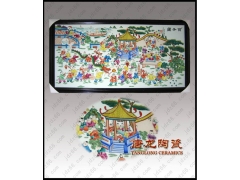瓷板畫是指在平素瓷板上使用特殊的化工顏料手工繪畫、上釉,再經(jīng)高溫?zé)贫傻囊环N平面陶瓷工藝品。瓷板畫可裝裱、或嵌入屏風(fēng)中,作觀賞用。瓷板畫最早可追溯到秦漢時期,而真正意義上的“瓷板畫”則出現(xiàn)在明代中期。從清中期開始,瓷板畫的發(fā)展走向了興盛。瓷板畫具有瓷板平整光潔之美,便于陶藝家以瓷當(dāng)紙,隨意揮毫,充分發(fā)揮作者的繪畫天才,充分展示瓷畫的審美意境。