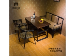 美式客廳復(fù)古鐵藝軟皮沙發(fā)椅酒吧桌椅雙人咖啡桌卡座椅單人椅